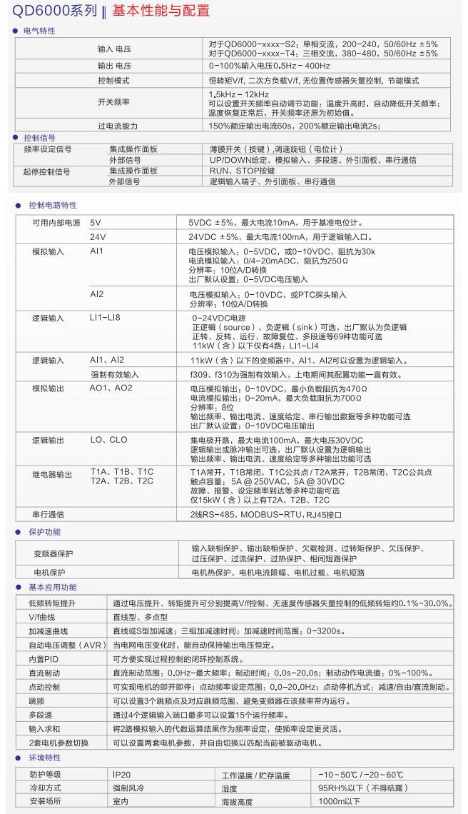 QD6000系列是PA视讯平台科技开发的新一代高性能变频器,以符合广大用户的应用需求为设计理念,具有丰富的功能,卓越稳定的性能,简洁新颖的结构。QD6000系列变频器采用了先进的无速度传感器矢量控制技术、先进的电机参数辨识、在线估计技术及先进的磁链估计技术,无论是在调速范围还是在动态响应、控制精度及低频转矩上均得到了很大的提高。