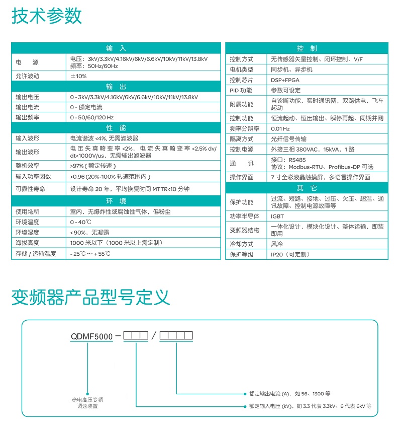 QD-MF系列高压大功率变频器是集国际高档的电力电子技术和矢量控制技术为一体而开发的注重节能环保的高压IGBT变频调速装置,不仅具备优异的控制性能,同时还结合中国的应用特点,进一步强化了产品的可靠性、环境适应性以及客户化和行业化的设计,能够满足煤矿、水泥、火力发电、石油、橡胶、冶金、化工、造纸等行业应用的需求,实现高压电机的调速运行及优化控制,并达到大规模节能降耗的作用。